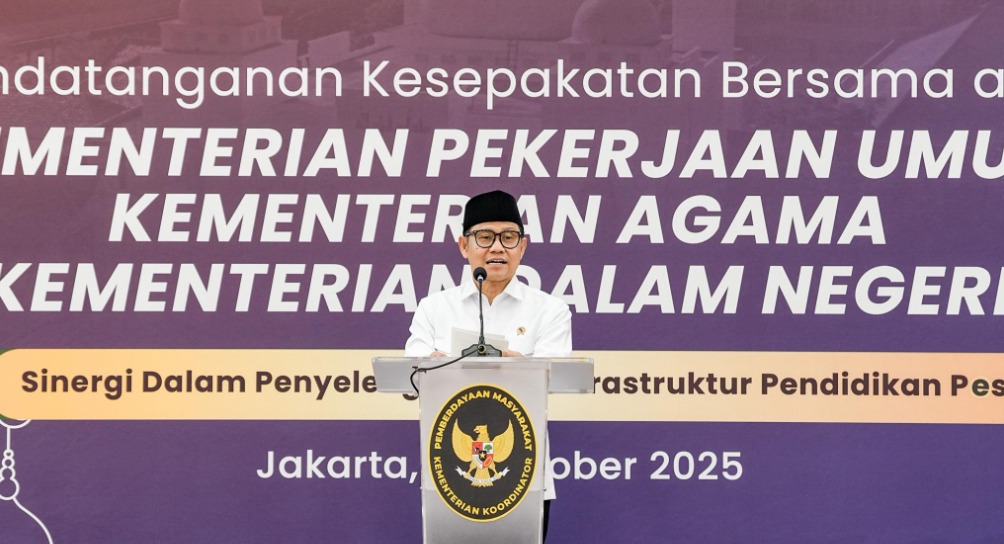 lognews.co.id, Jakarta - Menteri Koordinator Pemberdayaan Masyarakat, Abdul Muhaimin Iskandar, memimpin penandatanganan kesepakatan bersama lintas kementerian dalam rangka penataan pesantren, yang melibatkan Kementerian Agama, Kementerian Pekerjaan Umum, dan Kementerian Dalam Negeri. Acara ini berlangsung di Kantor Kemenko PM, Jakarta, Selasa (15/10/2025).