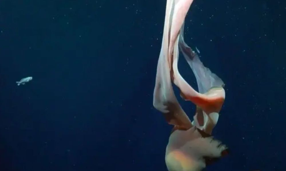 Selain itu, tim juga mengamati kemunculan ubur-ubur hantu berukuran besar yang dapat mencapai panjang sekitar 10 meter. Spesies ini tergolong jarang terlihat dan menjadi salah satu sorotan ilmiah dalam penelitian laut dalam.