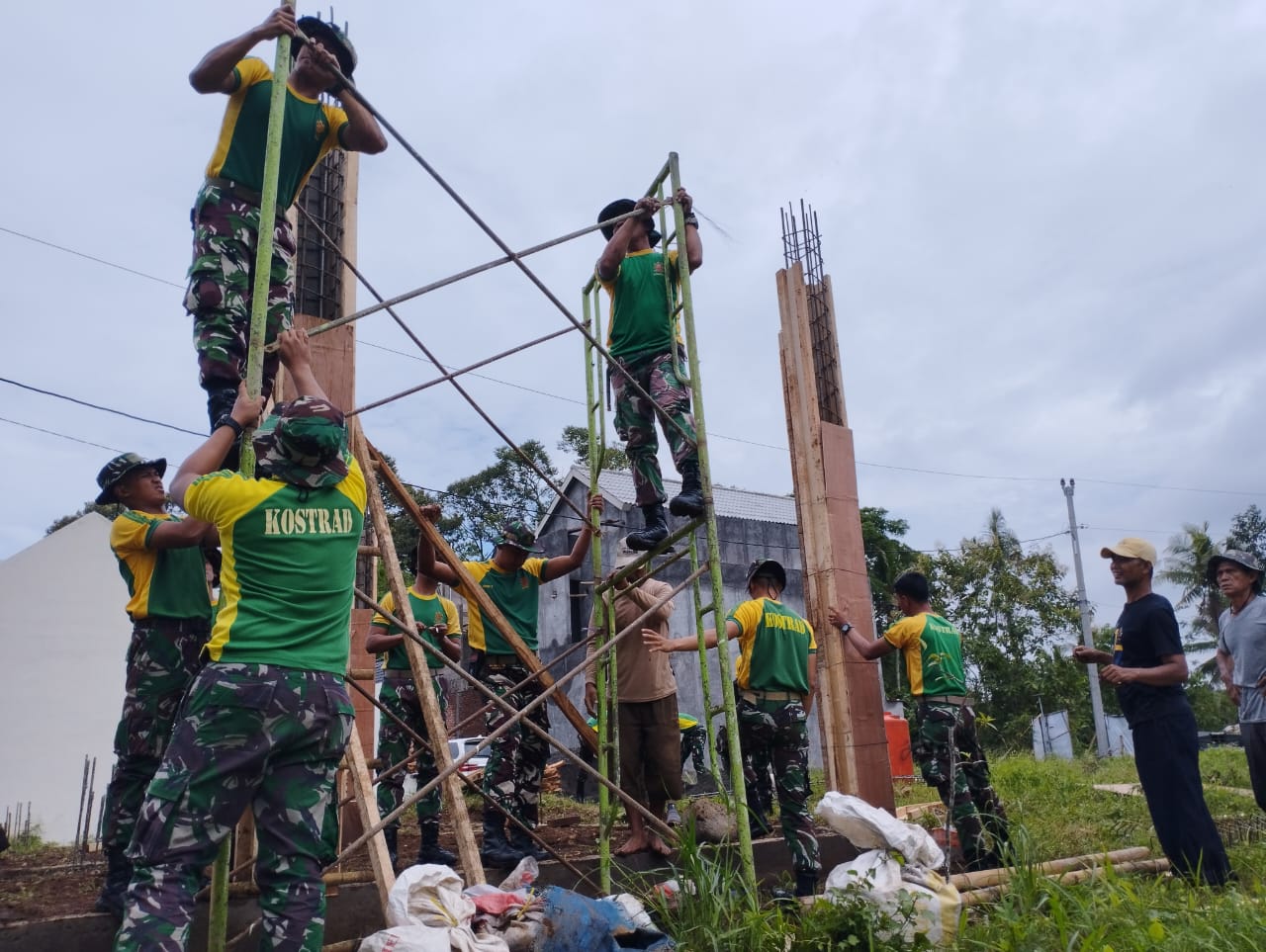 Kegiatan gotong royong ini dilaksanakan pada Kamis, 23 Oktober 2025. Para prajurit bahu-membahu bersama pengurus yayasan, fokus pada pembangunan tiang penyangga untuk gedung panti asuhan berlantai empat yang akan menampung anak-anak yatim.