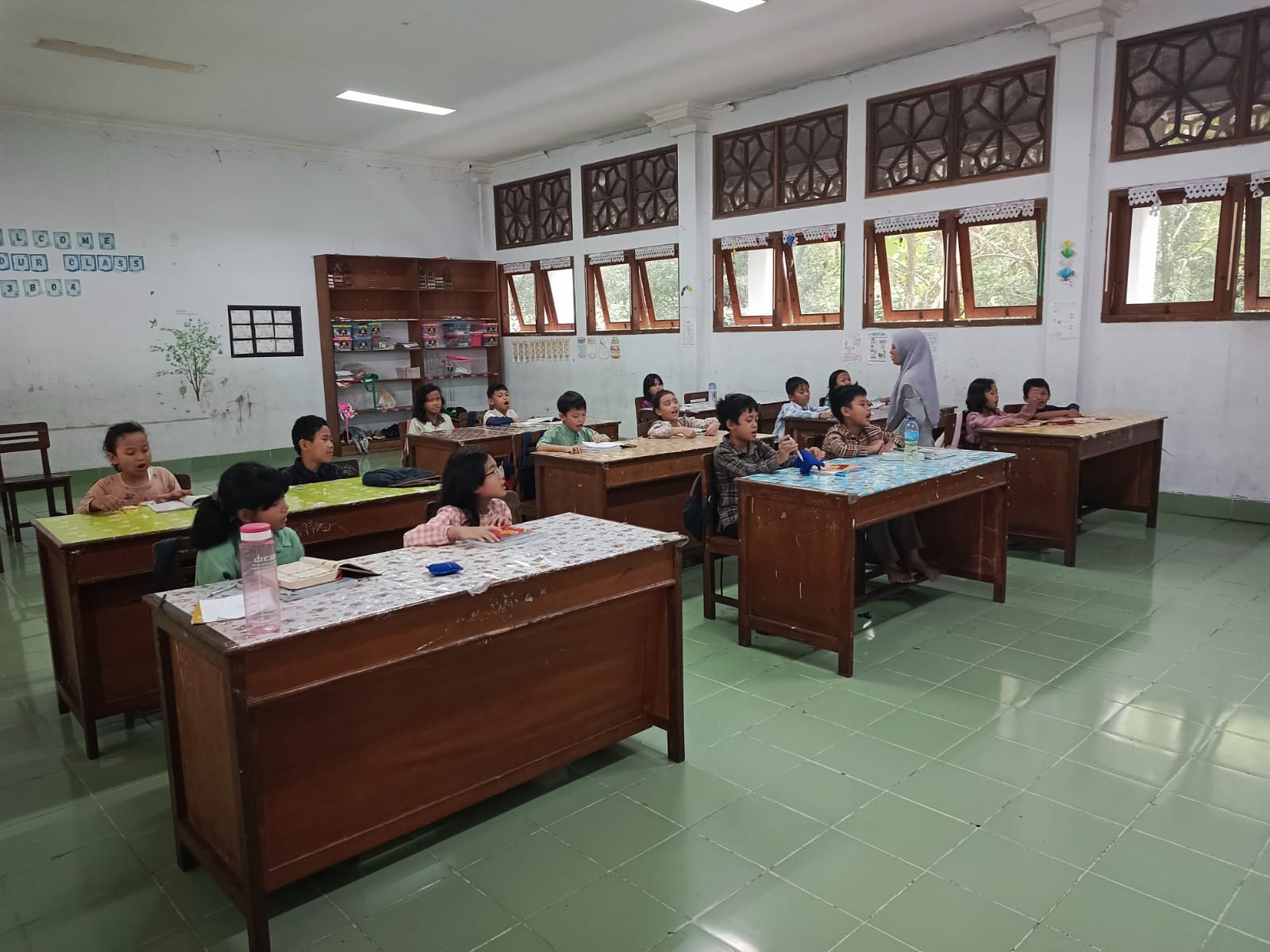 Pembelajaran dimulai dengan mengulang materi sebelumnya. Seluruh pelajar membaca Surah Al-Bayinah bersama-sama, ayat demi ayat, disertai artinya. Suara lantunan Al-Qur’an terdengar serempak dan penuh kekhusyukan.